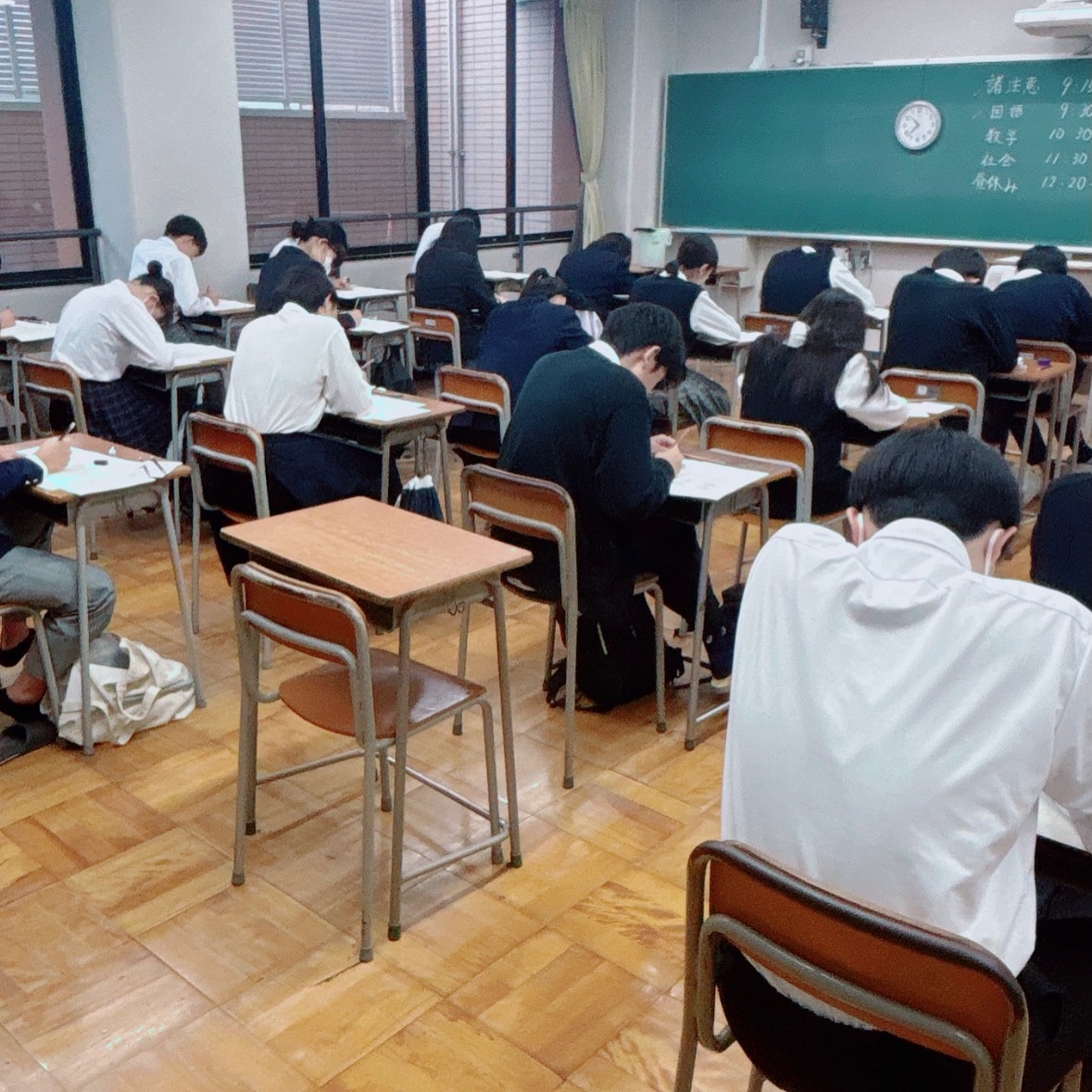 多くの中学3年生たちが集まり、普段は異なる中学校に通う生徒たちと一緒に受験することで、まさに本番に近いリアルな緊張感を味わうことができました。